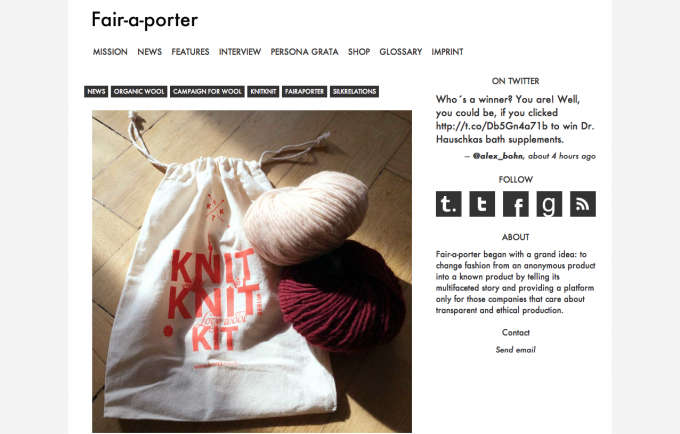 Can fashion really be ethical? We thought we’d chat to Berlin based fashion journalist Alex Bohn, who works for super prestigious German broadsheets Die Zeit and the Süddeutsche Zeitung, to find out. Alex decided to start her own ethical fashion blog Fair-a-porter and only gives companies a platform that care about transparent and ethical production.