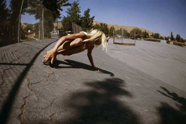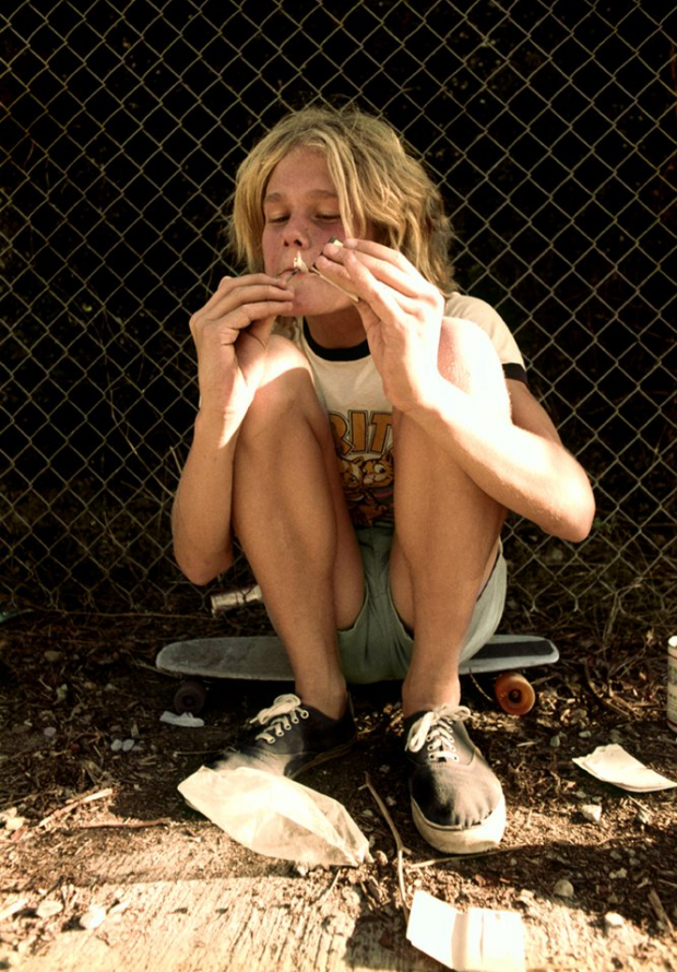 Hugh Holland, skate photographer of skate photographers wasn’t a skateboarder himself. Pretty surprising, don’t you think? But sometime in 1975, driving up Laurel Canyon Boulevard, he encountered his first skateboarders carving up the drainage ditches along the side of the canyon. He knew he had found his subject. And the tanned, longhaired teenage skateboarders of 70s California worked out well as Holland’s niche. Stacy Paralta (top image below), original Z-Boy, and later director of the super famous skate documentary Dogtown and Z-Boys, was only one of them.