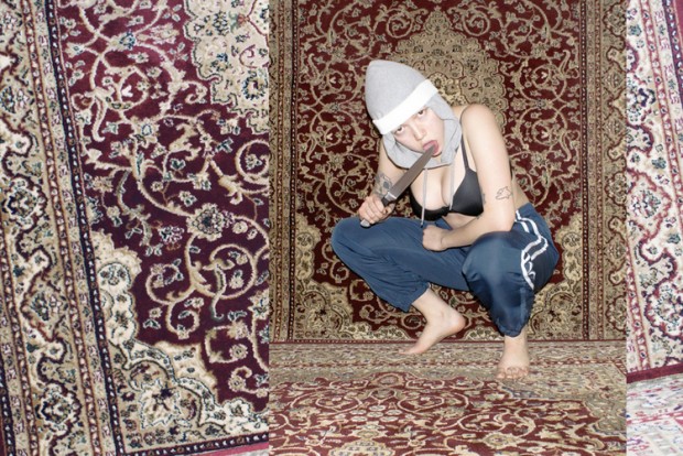 Violence? I have no violence in my work. Or yeah, if you mean the tied up girls in the video, I guess they represent violence a bit, but it’s just an image, nothing deeply violet behind that idea.