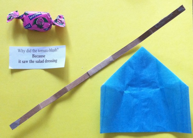 2- Find snaps, hats, jokes and prizes for inside the crackers. You can either buy these bits online, or get super-cheap crackers and disassemble them for the snaps and hats.