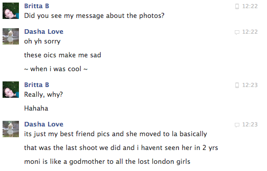 Dasha is talking about super cool, now LA based photographer Moni Haworth, who used to live in Bounds Green, London, where these pictures were taken. More Moni pics of Dasha (who is obviously still cool…) next Tuesday!