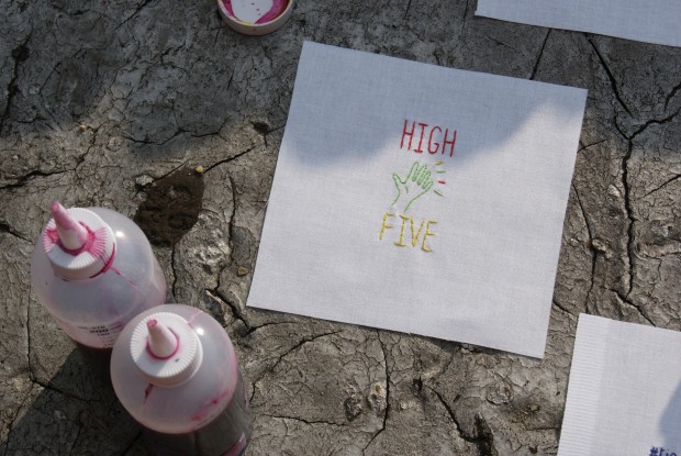 Embroiderist, Emma Ruth has put her hand to patch to create 10 exclusively hand stitched words especially for Tie Dye High Five to get their colours on. For a special charity auction they have teamed up to offer them out to the highest bidder, with the winner getting not only the exclusive patch but it custom tie dyed and made into a pocket tee. Now that’s a unique piece of clothing or special Xmas present right there!