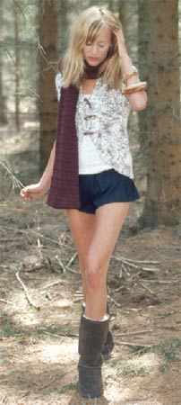 Boots by Reef £59.99; Knickers by French Connection £25; Bracelets by Freedom for Topshop £20 for two; Bracelet by Mood at Debenhams £15; Vest by Body £39; Knit waistcoat by Topshop £35; Scarf by Sonia Pessoa £63