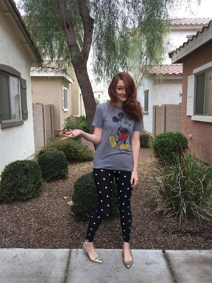 “This was probably my favourite day. These polka dotted Lula Roe leggings look great with my Mickey T-shirt.”