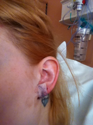 Intern Kayleigh promised us straight after the op shots and she’s clearly dedicated to keeping us all up to date, so here they are… Enjoy! If you have no clue what we are talking about, check out our little style feature about her big piercings.