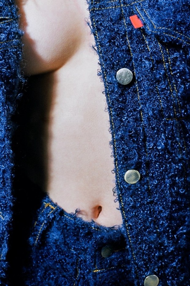 Faustine Steinmetz is making some extremely cool garments, producing her own fabrics and is the woman behind amazingly fluffy woven jeans. Originally from Paris, she moved to London to complete her masters in Central Saint Martins. In her East London studio, her team spins, dyes and weaves all fabrics before constructing into incredble pieces of art. She claims she doesn’t like fashion and compares her practice of making clothes to the art of painting a vase. Making iconic pieces like the jean or leather jacket and giving them a whole new level of texture and design. We chat about personal style, her parents forbidding denim in her teenage years and her inspirations, meet the wonderful Faustine Steinmetz…