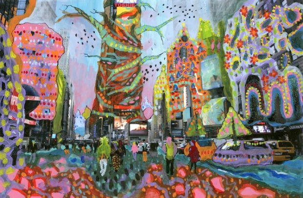 I recently went to the American Visionary Art Museum and saw art by Kenny Irwin Jr. in a part of an exhibition there. He had a bunch of colorful ballpoint pen drawings on the walls of Islamic looking outer space worlds inhabited by aliens and people that lit up my eyes. If I remember what I read about him correctly, his images have come from his detailed dreams ever since he was very young. In a room nearby also by him called “robotmas” what sounded like Bollywood Christmas music was playing, mechanical robot parts spun around, lots of weird, little Christmas robots were attached to places, some with resin glove hands filled with bugs on their heads, and other things filled the room. It was very colorful and made up of many sculptures fused from Christmas objects, bugs, mechanical junk, paint, resin, lights and eyeballs. It was wonderful to be in that room knocked from the normal ambling path of museums into one of slow spinning around, walking backwards, coming to full stops in awkward places and ducking to look at something more closely… ordinary life transformed. I’m excited to continue to learn about him.