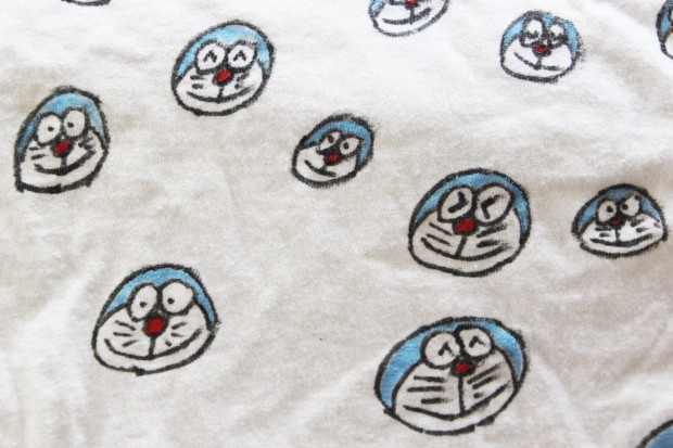 I was in Barcelona and my friend was eating Nutella from this special edition Doraemon jar and I loved it so much so when he was done with it he cleaned it all up and gave it to me. I was using it as my water cup for painting and when I was trying to think of they first shirt I was gonna make I looked at it and knew that’s what I wanted. The Doraemon shirts are the most popular cause everyone loves Doraemon, but I am trying to make my own characters so I don’t get sued.