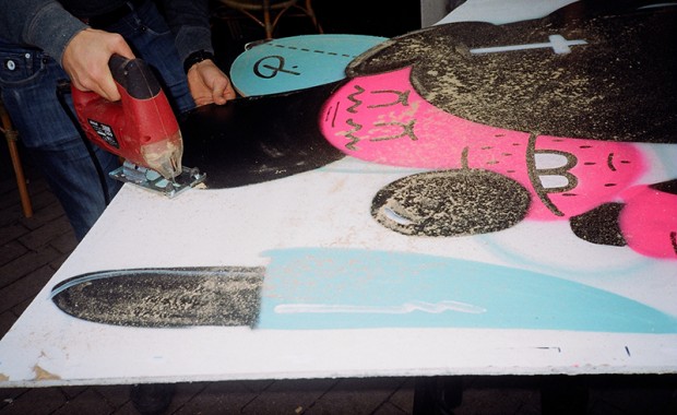 Here is a dawgie by Mr Phomer. After it’s been painted we used a saw to cut off the edges!