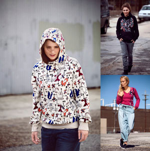 HILDUR BJöRK TEOMAN, Iceland – Graduated as a fashion designer from the Iceland Art Academy in 2006. She is “sort of romantic when it comes to drawing style” and hand draws everything. Old fashioned craft methods such as embroidery, crochet and knit work are revamped in a new and fresh way. Hildur confessed to loving working with streetwear and her designs for Nikita were inspired by looking through old National Geographic copies her father collected in the 70’s and 80’s. Watch out for more of Hildur’s prints in the summer of 2011.