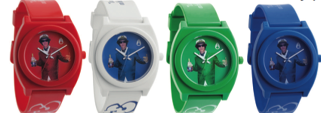Longtime loves of surf, skate and snow the Beastie Boys have gotten into bed with Nixon pulled the duvet up high and produced a line of four super-limited edition watches. They come in red, white, green and blue with an image of Mike D plastered on the face. There’s also a special message from him on the strap and watch case. The release comes as their latest album Hot Sauce Committee Part Two hits the shops.
