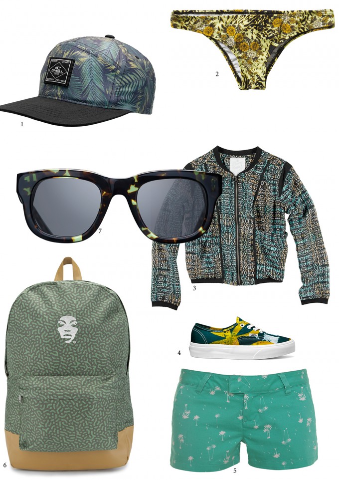 1: O’Neill, 2: RVCA, 3: Element Eden, 4: Vans, 5: Volcom, 6: Supremebeing, 7: Triwa