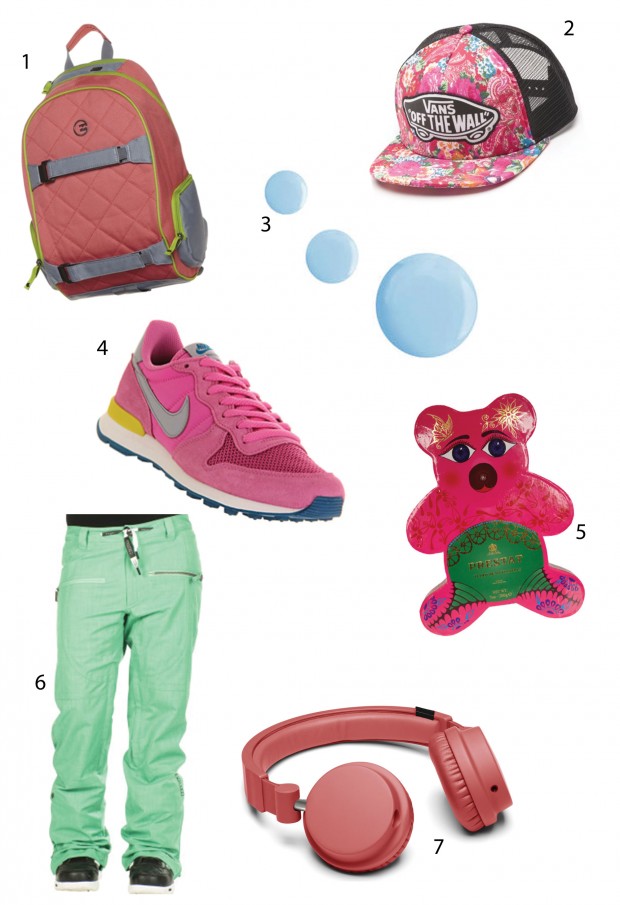 Everybody loves a bit of sweetness in their lives, wether its hugs from your puppy, popcorn at the cinema, or vanilla scented body cream. We all have our secret sweet tooth, so for this weeks ‘Pick Of The Threads’ I’ve opted for a candy theme. Wether its the mint Nikita snow pants or a coral Billabong back up, sweeten up your life with a sprinkling of candy!
