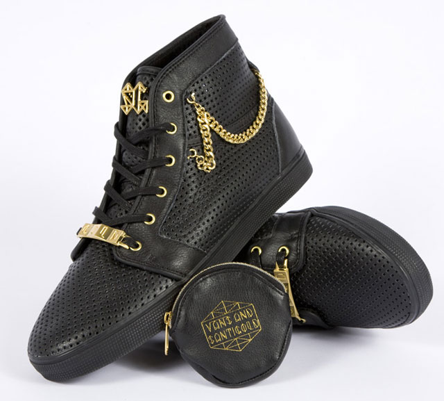 With her eclectic sound, incredible sense of style and love for Vans, it was too good to be true when Vans and Santigold joined forces for a special February 2011 shoe release. Santigold teamed up with Vans designers to create a shoe of her very own. Working with the new Tosha Hi silhouette and Santi’s personal design aesthetic, the limited Vans x Santigold collaboration features premium perforated full grain leather, faux gold chain accents. The look becomes complete with a custom SG gold pin created with the trained eye of jewelery designer Jules Kim of Bijules.