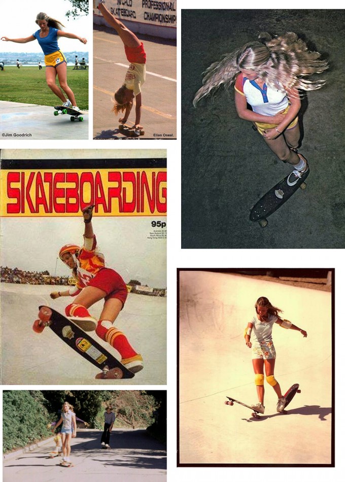 The colour coordinated skater above is Ellen O’Neal, shot in October 1976 by skate photography legend Warren Bolster. The Southern Cali freestyler who became famous for her downhill high speed nose wheelies and her signature two board daffy manoeuvres was inducted into the Skateboarding Hall of Fame this month.