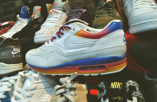 Jess’ 3 favourite pairs from her stand. DS elephant atmos Air Max 1s, DS all blue Huarache Le’s, DS History of Air Air 180s, DS ‘adventure pack’ air max 1s