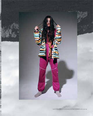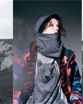 left: NIKITA jumpsuit and cardi; right: BURTON jacket, PENDLETON blanket