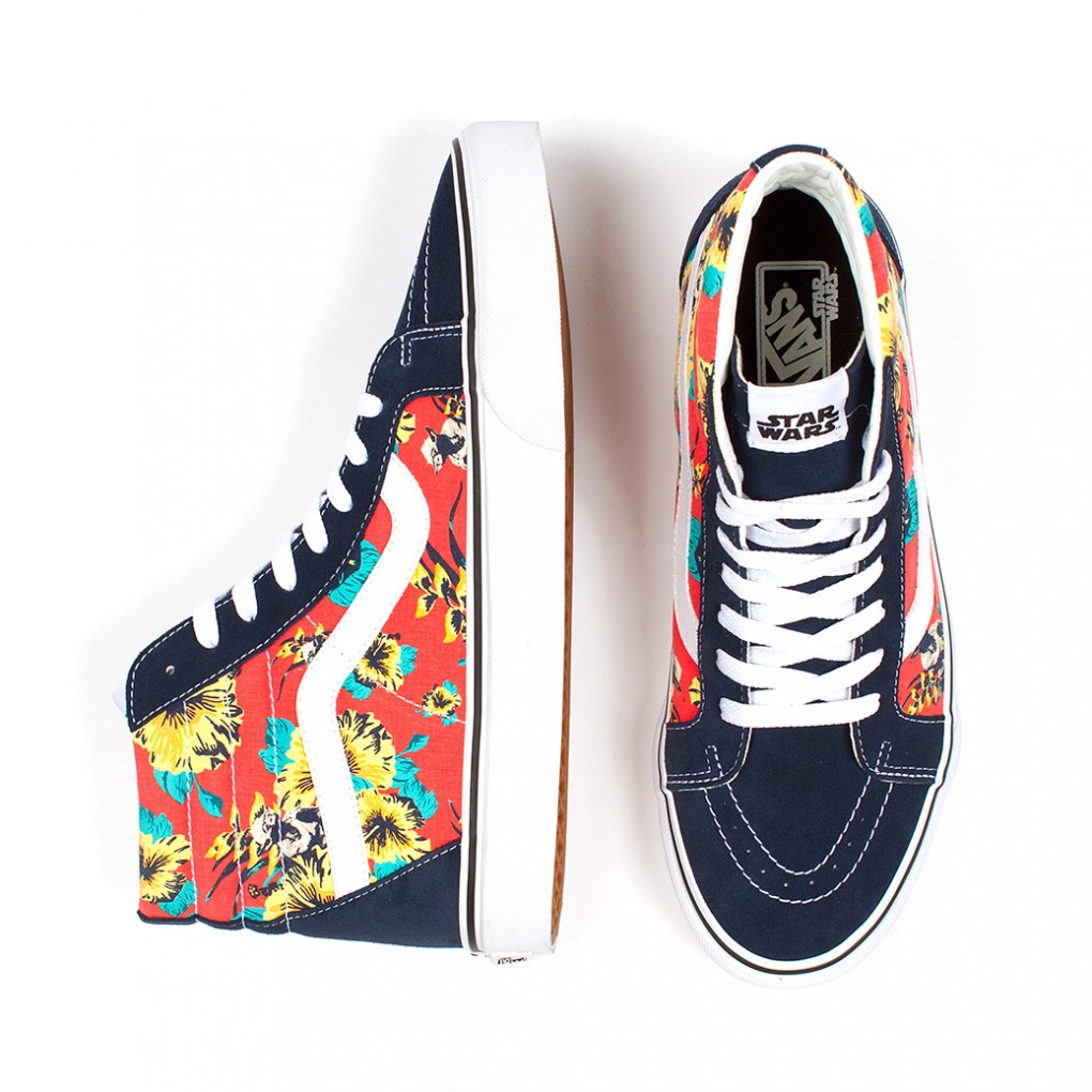 It’s not just any bandana print, but the Stormtrooper bandana print of the latest – Star Wars themed – Vans collaboration. There’s also a super cool Yoda aloha print, where the grand master of the Jedi order effortlessly blends in with classic Hawaiian floral patterns.