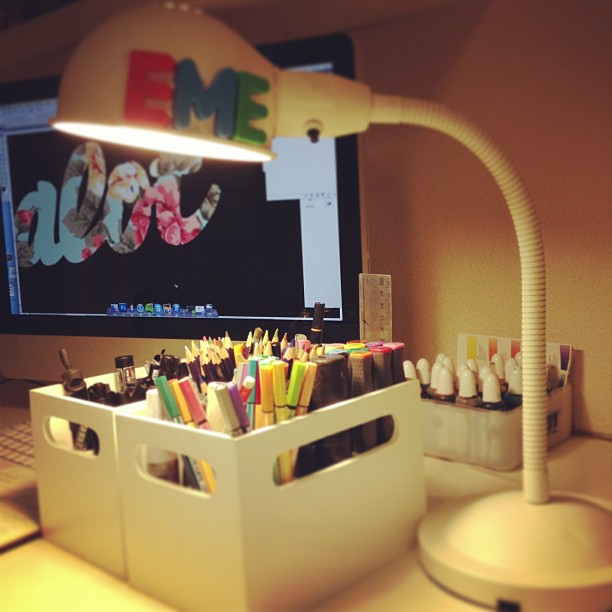 Eme is a female painter from Spain who loves typography. She describes her work as simple, naive, graphic and shy.