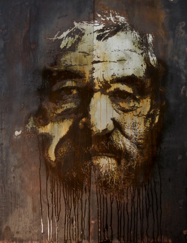 This piece has been made with metal, for other projects even wood is used. Check out his website and decide for yourself which portrait and material you prefer….