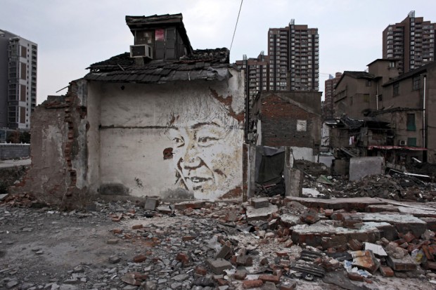 Another trait I like about a lot in Vhils work is his use of the material. Textures are a big element to his pieces whether its layering of ripped paper off of billboards or in the the case of the work above the rubble from the wall.