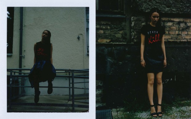 The lookbook is photographed and conceptualised by Berlin based photographer Alexandra Waespi. Shot on Analog film on a old University Campus in the Mitte District of Berlin, the AW13 collection story reflects the dark, brooding aesthetic and wordplay that is synonymous with the ethical label that has attracted high profile fans including Cara Delevingne, Dakota Fanning and Jourdan Dunn.