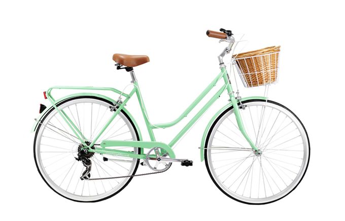 This mint green number is the perfect for cruising around in. It’s got a super comfortable seat and padded handlebars, plus a wicker basket and seven speed gears for when you need to step it up a notch.