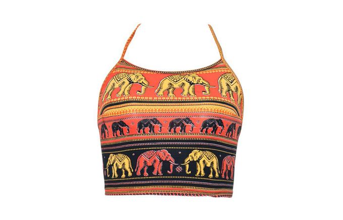 This elephant parade crop top is at the very top of our wish list at the moment, with its halter style and awesome print.