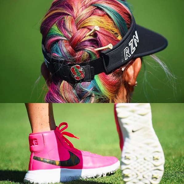 The 25-year-old Hawaiian pro rocked up at the Evian Championship in France this week with multi-coloured hair.