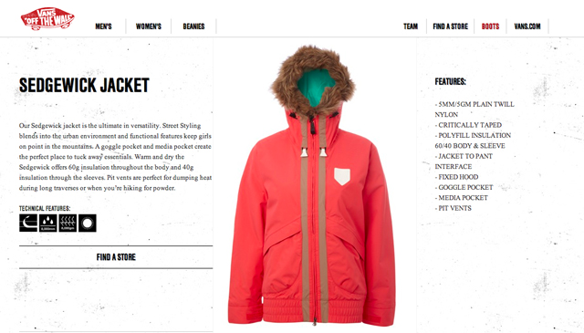 Happy clapping everyone, the Vans Outerwear collection for Winter 2012/13 is now live on their website! Browse through all the new styles, compare the colours and fiddle through all the details. If you read our winter trends piece ‘Earth, Do You Read Me?’ in the current mag, you’ll know that you’ll be totally up to date with their jewel-coloured and heritage-detail peppered collection.