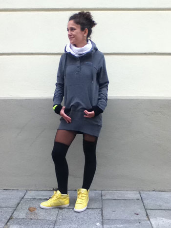 The Cooler crew in their favourite outfit of the week…. German editor Anna Langer is wearing a ZIMTSTERN hoodie, TOM TAILOR overknees, SWATCH watch, KUNERT cuffs, GRAVIS shoes and a scarf from a market in Thailand.