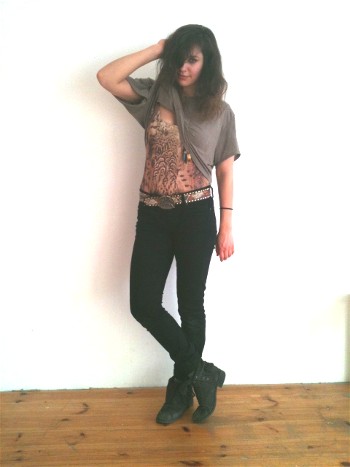 The Cooler crew in their favourite outfit of the week… Photographer Diane Sagnier is wearing an H&M crop top, a vintage animal print top and a vintage belt.