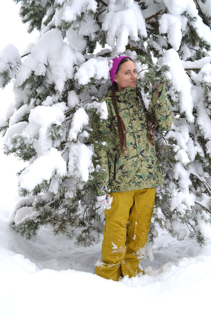 Back in the snow with fashion ed Britta Burger blending into the idyllic scenery with her O’NEILL jacket, VOLCOM pants and VANS beanie.