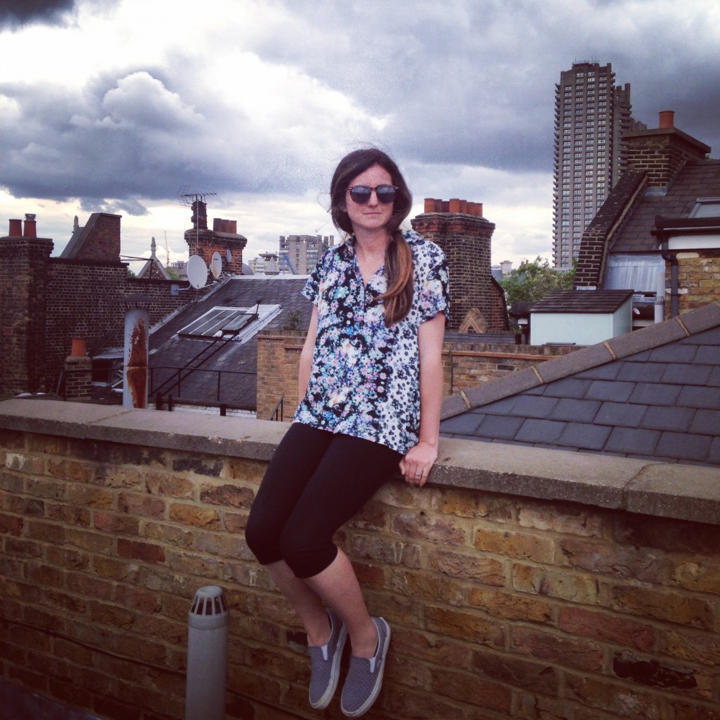 Editor Sam Haddad with a stormy rooftop backdrop, wearing VANS slip ons, AMERICAN APPAREL leggings & shirt from URBAN OUTFITTERS. Blotchy face model’s own