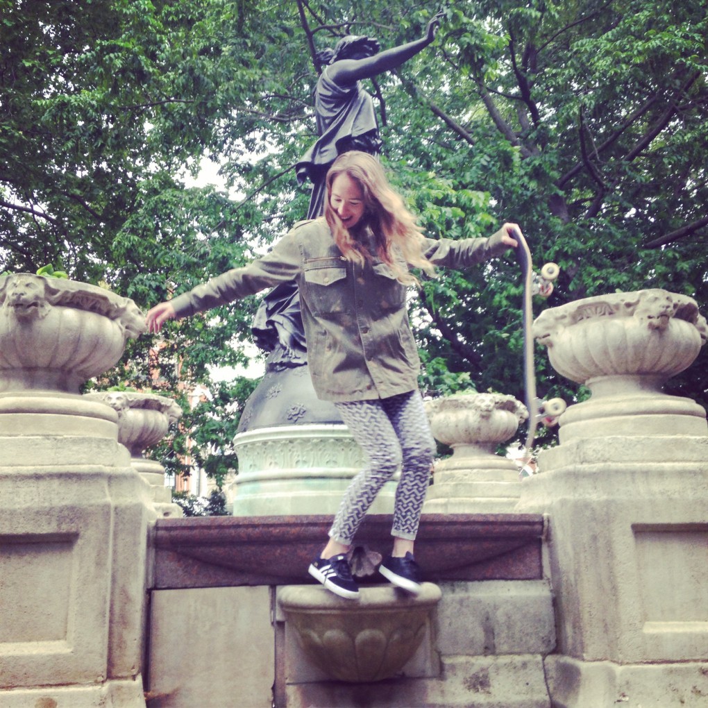 Lois Pendlebury jumps around in a VOLCOM jacket, URBAN OUTFITTERS leggings & ADIDAS trainers. Photo by Britta Burger