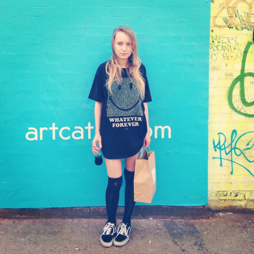 Cooler style contributor Dasha Love does teenage grunge in a GLOBE tee, vintage socks & VANS. Photo by Britta Burger