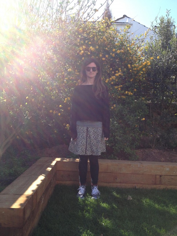 Editor Sam Haddad gets flower photobombed while wearing VANS limited edition ‘Love me, love me not’ Sk8 hi slims, a VOLCOM pullover, Cooperative skirt & sunnies from Urban Outfitters, American Apparel leggings & a Topshop vest