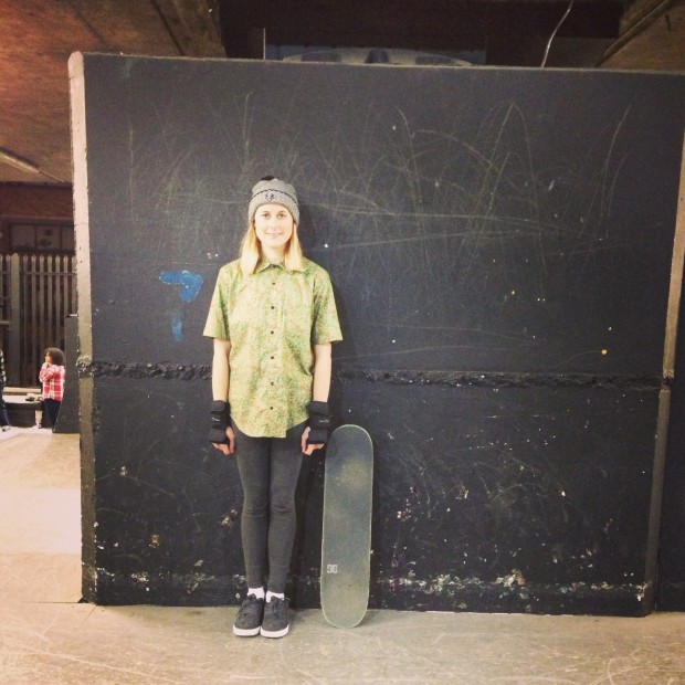 Cooler supercontributor Hannah Bailey wears a Ripndip peacock shirt, Rugman exclusive beanie, Slam City socks, DC SHOES Wes Kremer S, miscellaneous leggings & wrist guards. She’s shot by Britta Burger at Bay Sixty 6