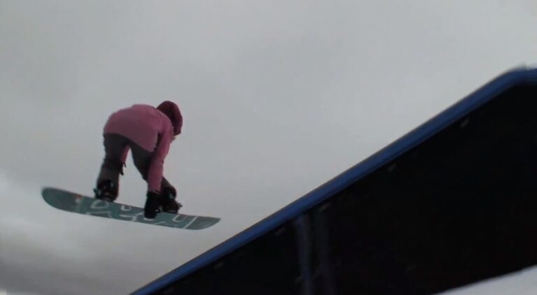 The teenage Head Snowboards and Protest snowboarder destroying the Telus Park