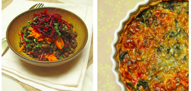 Starting off our new healthy-eating series with a menu made up of an carrot, beetrot & puy lentil salad and compté & spinach tart