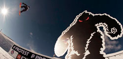 The teenage Head Snowboards and Protest snowboarder destroying the Telus Park