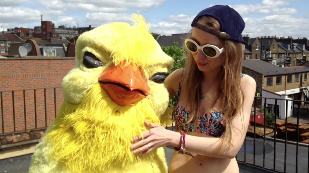 Dasha Love, her little sister, a big yellow chicken we found abandoned in a room we moved into, Suzi Kemp’s roof, pigeons, London Bridge Station and an O’Neill bikini. Here’s our latest film…