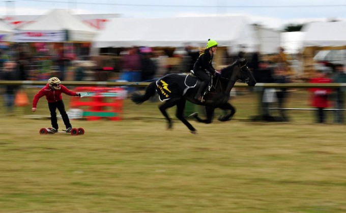 So there’s this new ‘sport’ on the block. Marry bindings on a mountain board, with a tow rope and erm a horse, and there you have it: Horseboarding.