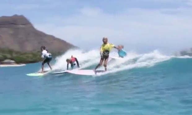 While waiting for the next call at the Roxy Pro in Biarritz (11 am according to roxylive.com), distract yourself with some footage from their girls contest in Hawaii earlier this year, with some beautiful footage of Kelia Moniz.