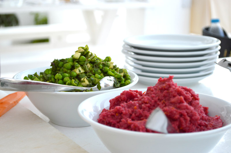 One of my favourites was the orange, beetroot, chickpea and lime dip he made for us – which was really simple to make (you just throw it all in a blender) and tasted delicious.