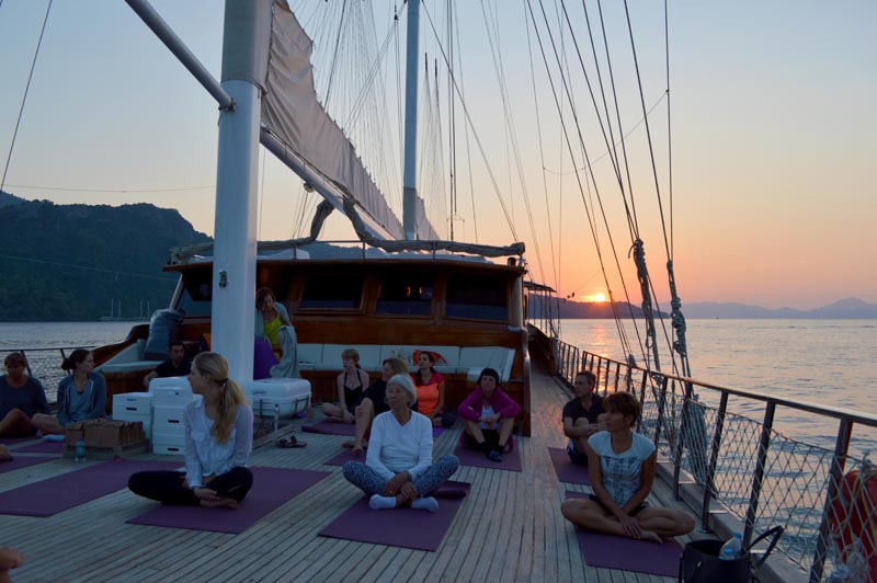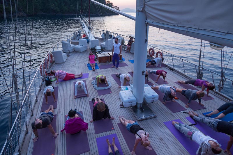 It was a warm still evening, the sky melting into an orange-pink colour as the sun dipped behind the mountains. The smell of incense was in the air as the class began – run by a Turkish yoga instructor with an English translator. As we lay in savasana at the end, the entire boat was silent, until we finally opened our eyes to see the stars twinkling above.