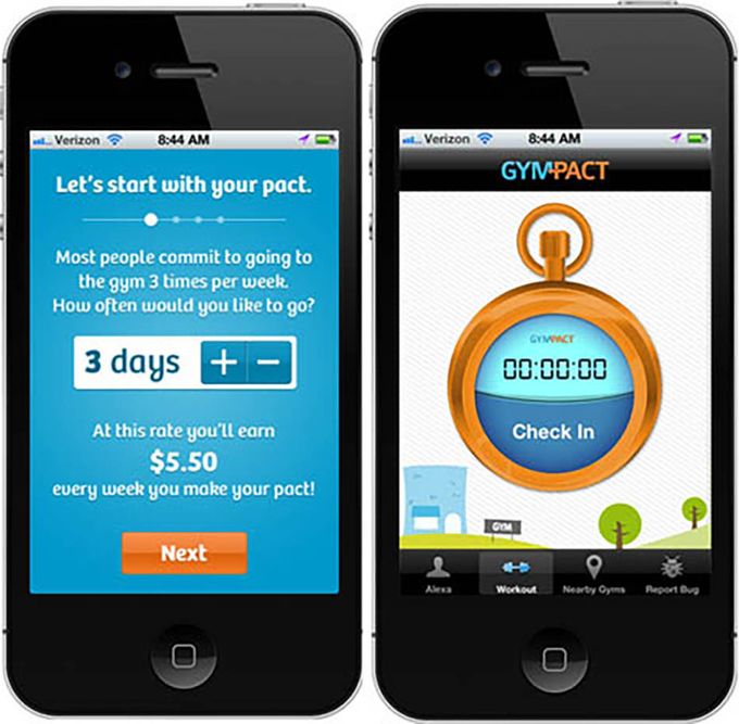The RunKeeper app has released a new app called GymPact. You join up to a group with other members of the Gym Pact.