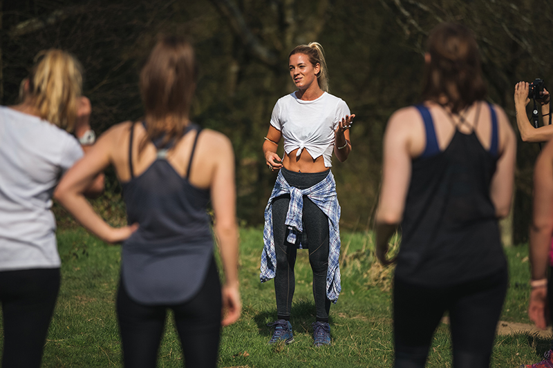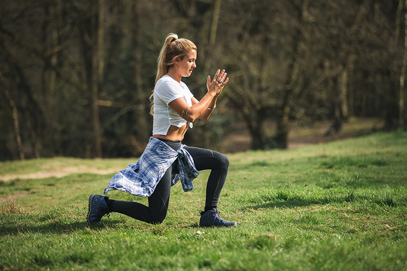 Running off pavements towards forest paths, the workout went from high intensity sprints, to forest bear crawls and serious core work, as Sophie proved how exercising in the open air with friends is much more fun than struggling on a treadmill on your own.