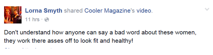 We were surprised however at the reaction the video got on our Facebook page, with a mix of people commenting on its stupidity or complementing her on her commitment to her job and lifestyle.