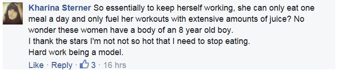 Is it dangerous and unhealthy, or is it just the reality of life as a high earning lingerie model? Let us know in the comments below.
